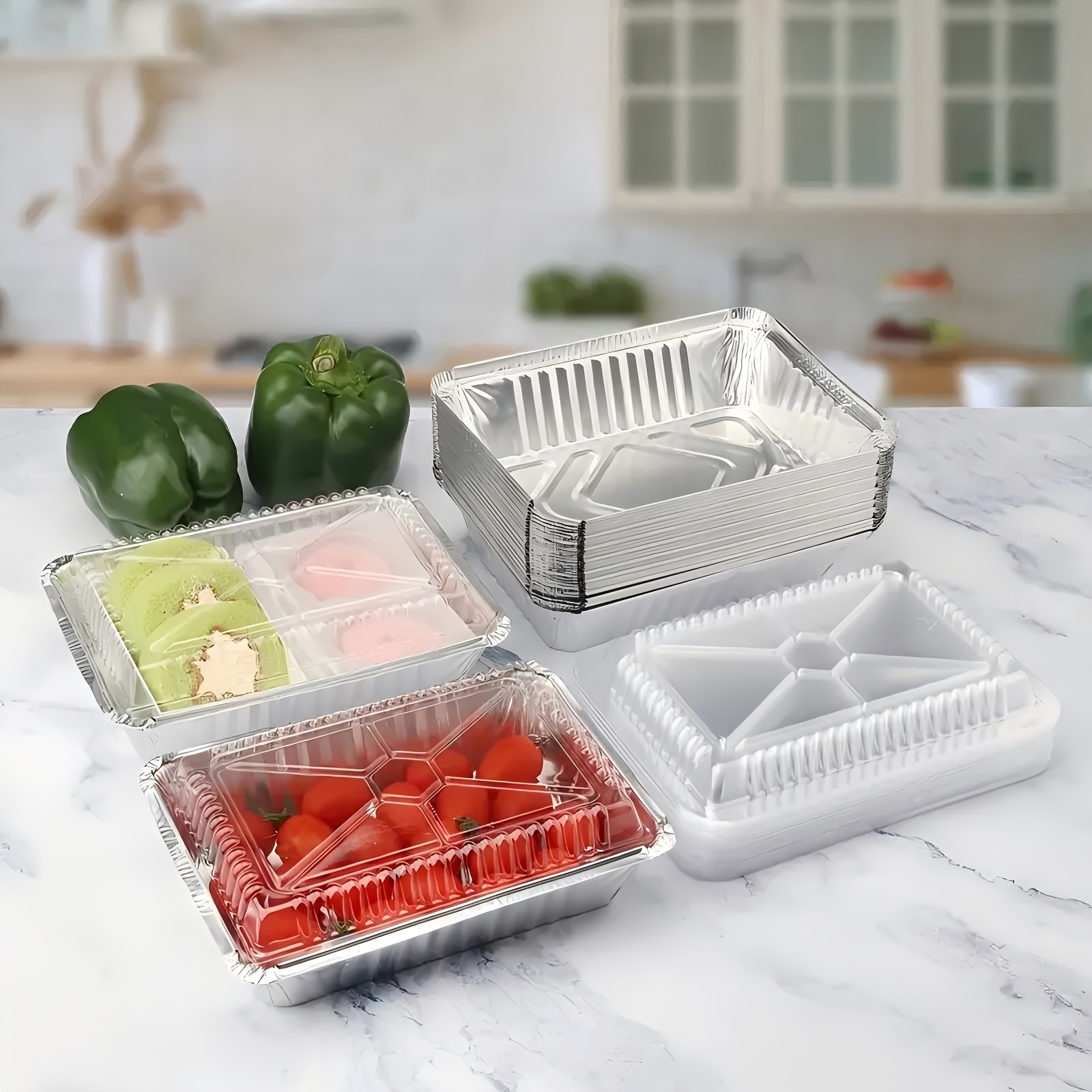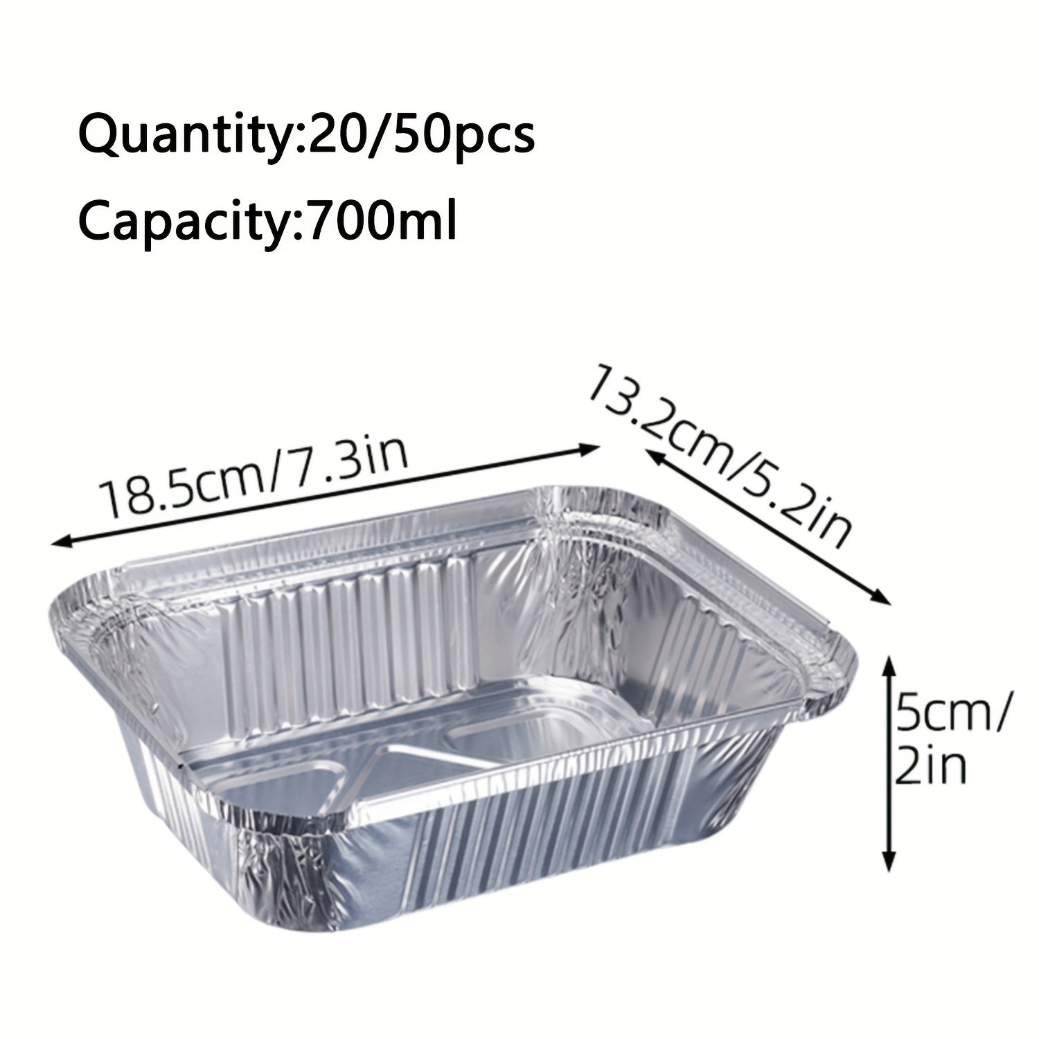 20pcs/50pcs Aluminum Square Foil Pan with Lid Recyclable Tin Food Storage Tray Super Strong Container for Cooking, Baking, Meal Preparation, Takeout-18.54 X 13.21 X 5.08 cm